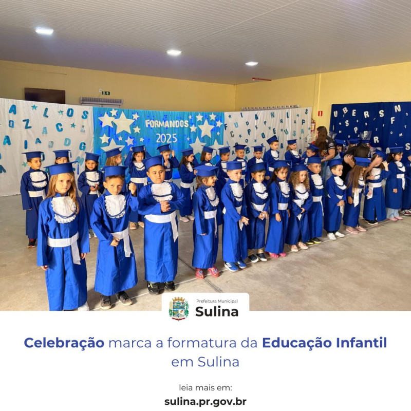 A Prefeitura de Sulina, por meio da Secretaria Municipal de Educação, parabeniza todos os formandos e suas famílias, bem como os profissionais da educação envolvidos nesta caminhada. Investir na primeira infância é garantir um futuro com mais oportunidades e aprendizado para todos.