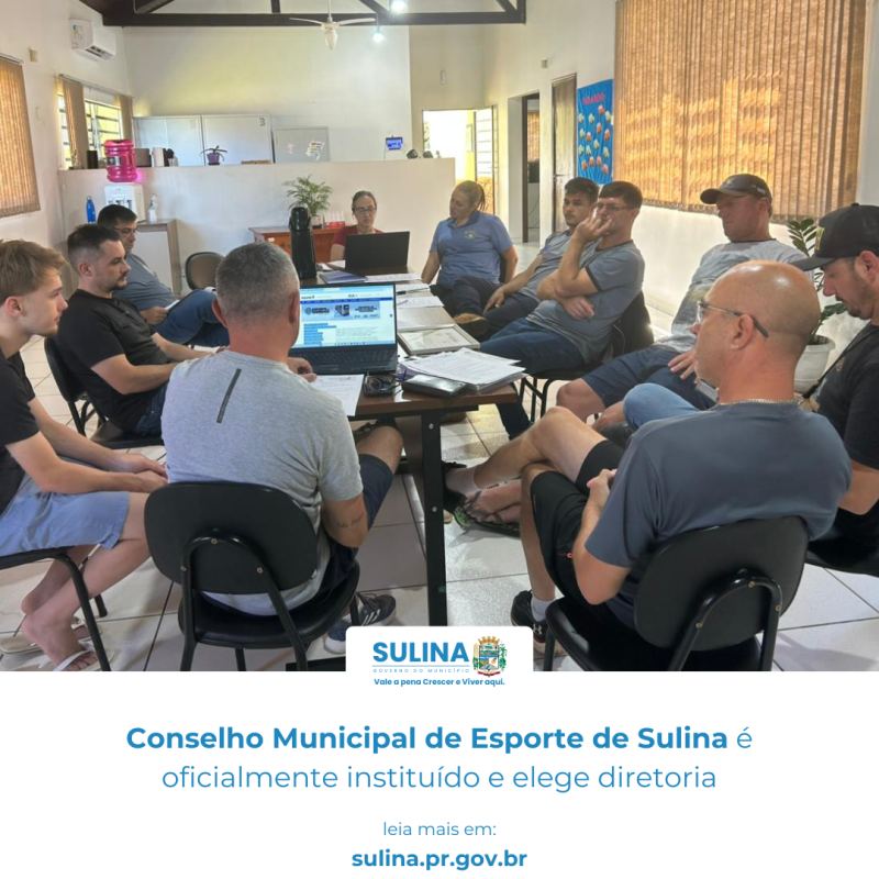 Com a fundação do Conselho e a instauração da diretoria, o município passa a contar com um espaço permanente de diálogo, troca de informações e construção coletiva, voltado à melhoria e ao aprimoramento de todas as ações relacionadas ao esporte em Sulina. A população poderá procurar qualquer um dos membros para apresentar sugestões, esclarecer dúvidas e contribuir com propostas.Na ocasião, foi eleita a primeira mesa diretora, tendo como presidente Cristiano Roberto Rapachi e vice-presidente Evandro Spigiorin.